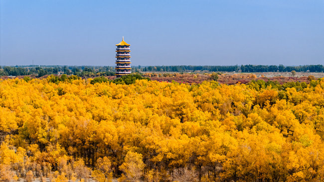 Located 8 km northwest of Jinta county is the famous Jinta desert populus euphratica forest scenic spot.