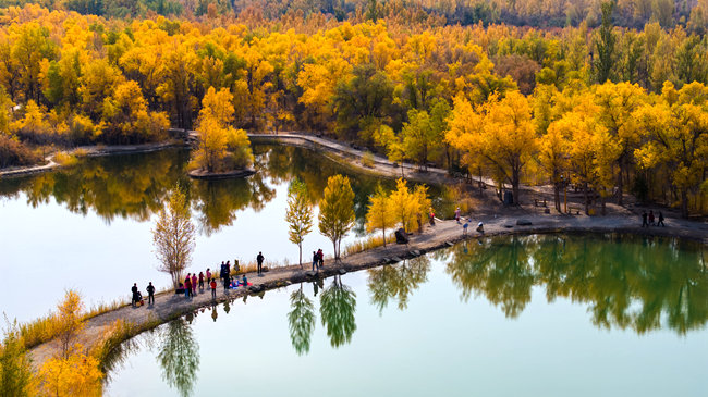 Photo shows the Jinta desert populus euphratica forest scenic spot in Jinta county, Jiuquan city, northwest China's Gansu Province. (Photo courtesy the media convergence center of China Railway Lanzhou Bureau Group Co., Ltd.)