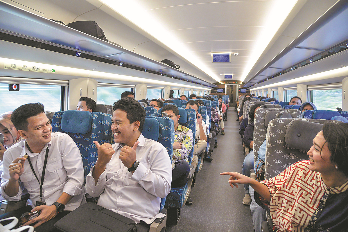 Passengers take the first commercial ride on the Jakarta-Bandung high-speed line in Indonesia. EDMOND TANG/CHINA DAILY/XU QIN/XINHUA
