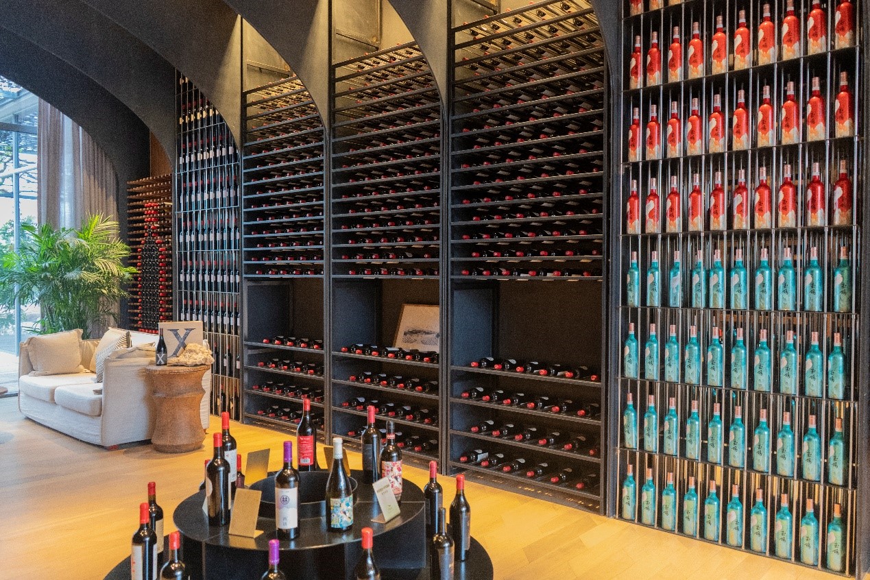 Wine bottles, adorned with an image of a pigeon from a painting by Emperor Huizong of the Song Dynasty (960-1279), line the shelves. This is a glimpse inside the exhibition room at Xige Estate, one of the wineries backed by Helan Mountain.