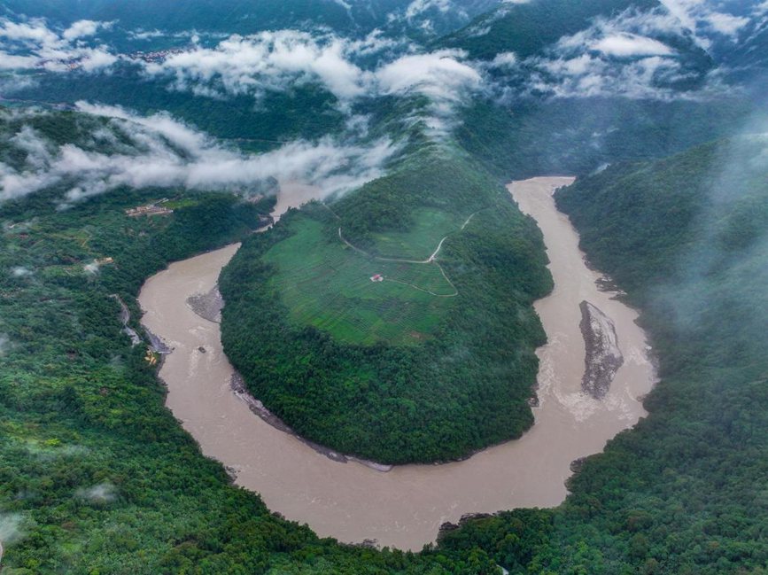 Photo shows a spectacular sea of clouds above the Guoguotang Big Turn of the Yarlung Zangbo River in Metok county, southwest China's Xizang Autonomous Region. (Photo/Zhang Zekun)