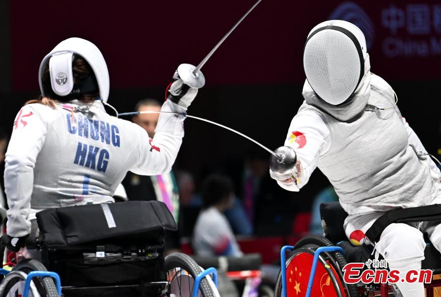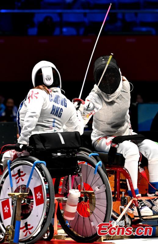 Players compete during the Women's Foil Team Final at the 4th Asian Para Games in Hangzhou, east China's Zhejiang Province, Oct. 24, 2023. (Photo: China News Service/Lv Ming)