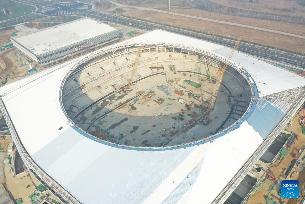 This aerial photo taken on Oct. 24, 2023 shows the construction site of the stadium of the Xiong'an sports center in Xiong'an New Area, north China's Hebei Province.