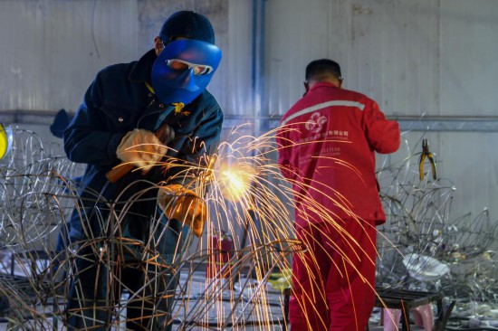 Welders work on lantern production at a factory in Da'an district, Zigong city, southwest China's Sichuan Province. (Xinhua/Tang Wenhao)