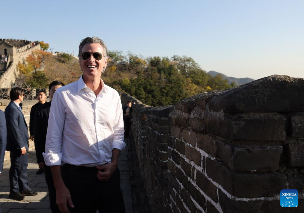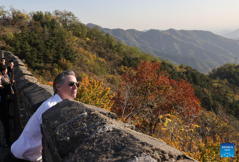 Gavin Newsom, governor of the U.S. state of California, visits the Mutianyu section of the Great Wall in Beijing, capital of China, Oct. 26, 2023. (Xinhua/Xing Guangli)