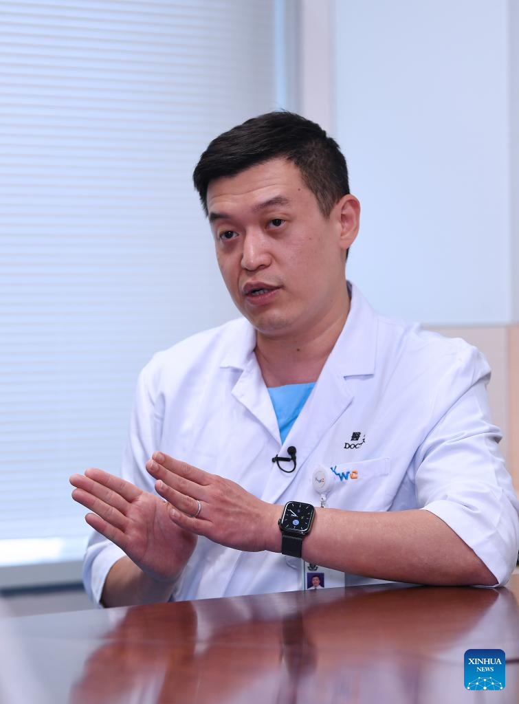 Liu Jiali speaks during an interview at Prince of Wales Hospital in south China's Hong Kong, Oct. 18, 2023. (Xinhua/Chen Duo)