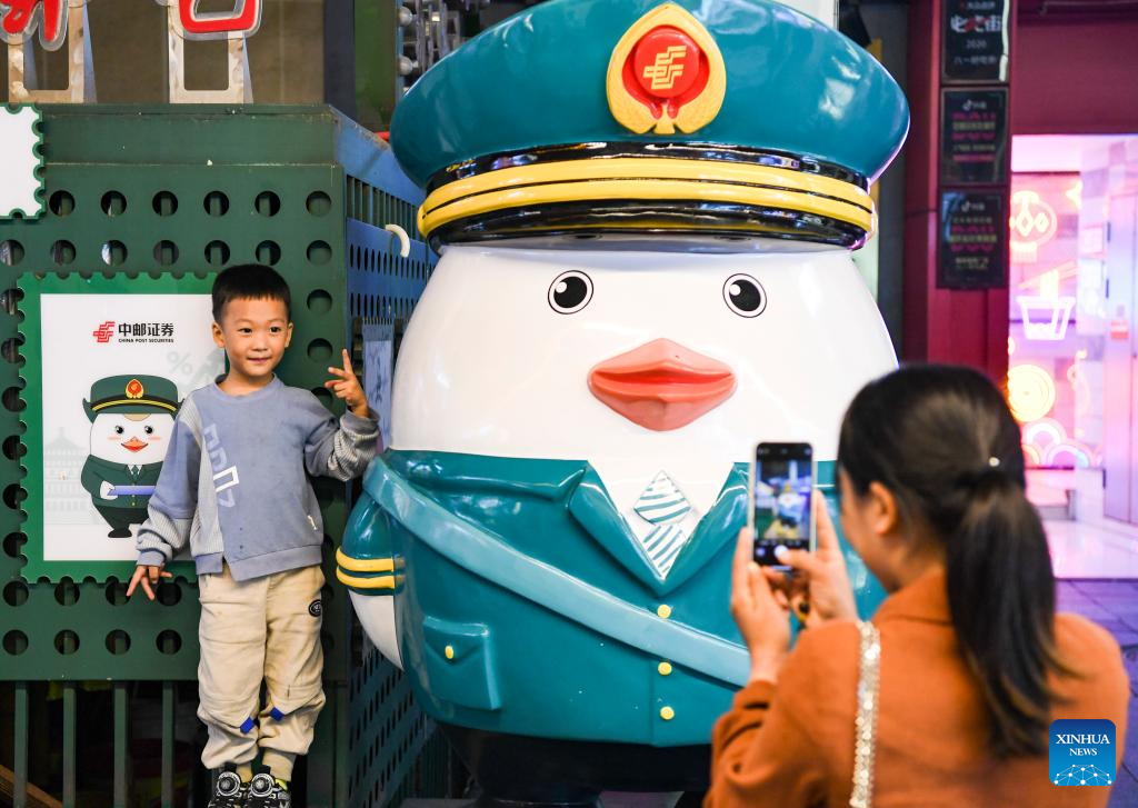 Tourists visit a post office on Duyou Street in southwest China's Chongqing Oct. 29, 2023. Duyou Street, an ancient street named after a postal service administration in the Qing Dynasty (1644-1911), has been renovated into a popular tourist destination featuring postal culture. (Xinhua/Wang Quanchao)