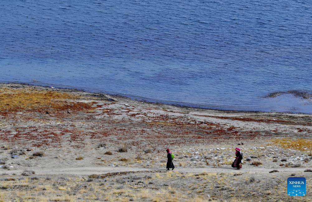 This photo taken on Oct. 29, 2023 shows the scenery of the Mapam Yumco Lake in Burang County of Ngari Prefecture, southwest China's Tibet Autonomous Region. (Xinhua/Zhang Rufeng)