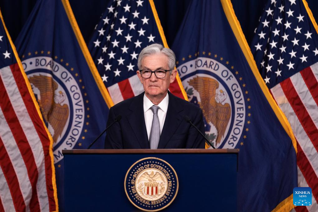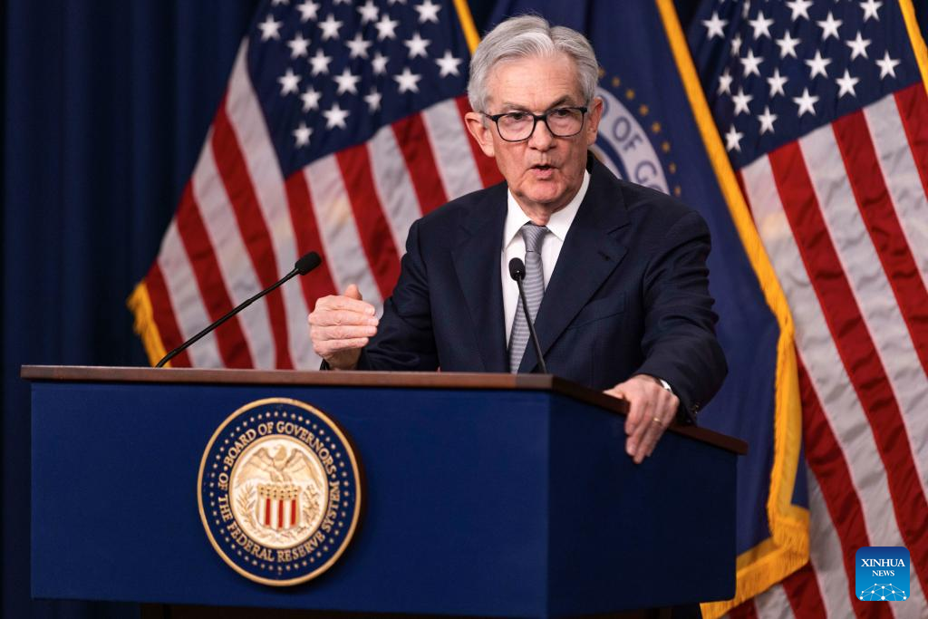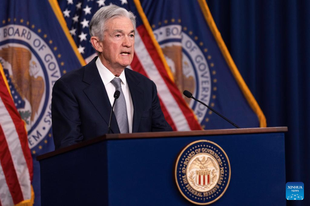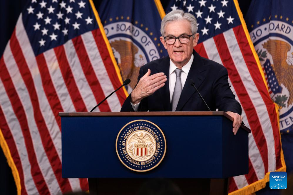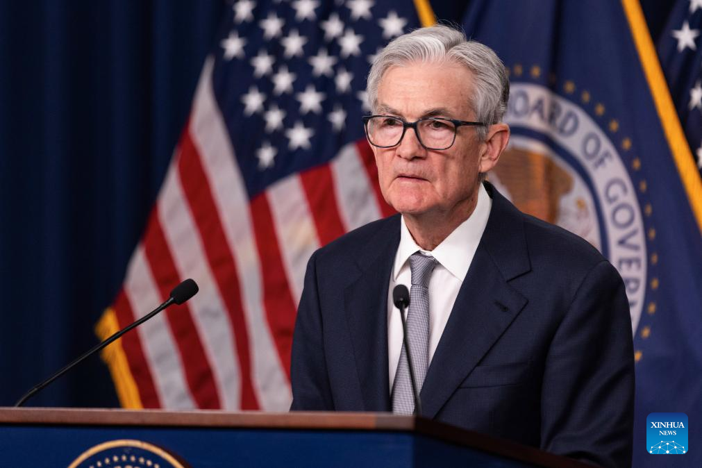U.S. Federal Reserve Chair Jerome Powell attends a press conference in Washington, D.C., the United States, on Nov. 1, 2023. The U.S. Federal Reserve on Wednesday left interest rates unchanged at a 22-year high of 5.25-5.5 percent, as yields on long-term U.S. Treasury bonds have spiked in recent months. (Photo by Aaron Schwartz/Xinhua)
