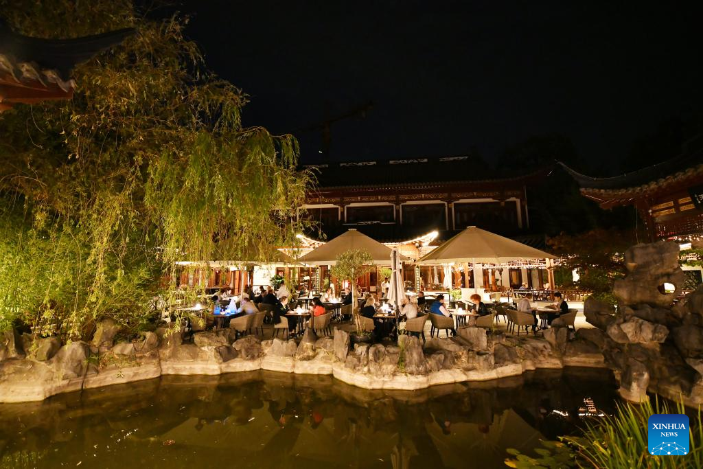 This photo taken on Sept. 27, 2023 shows people dining at Yuyuan Garden in Hamburg, Germany. (Xinhua/Ren Pengfei)