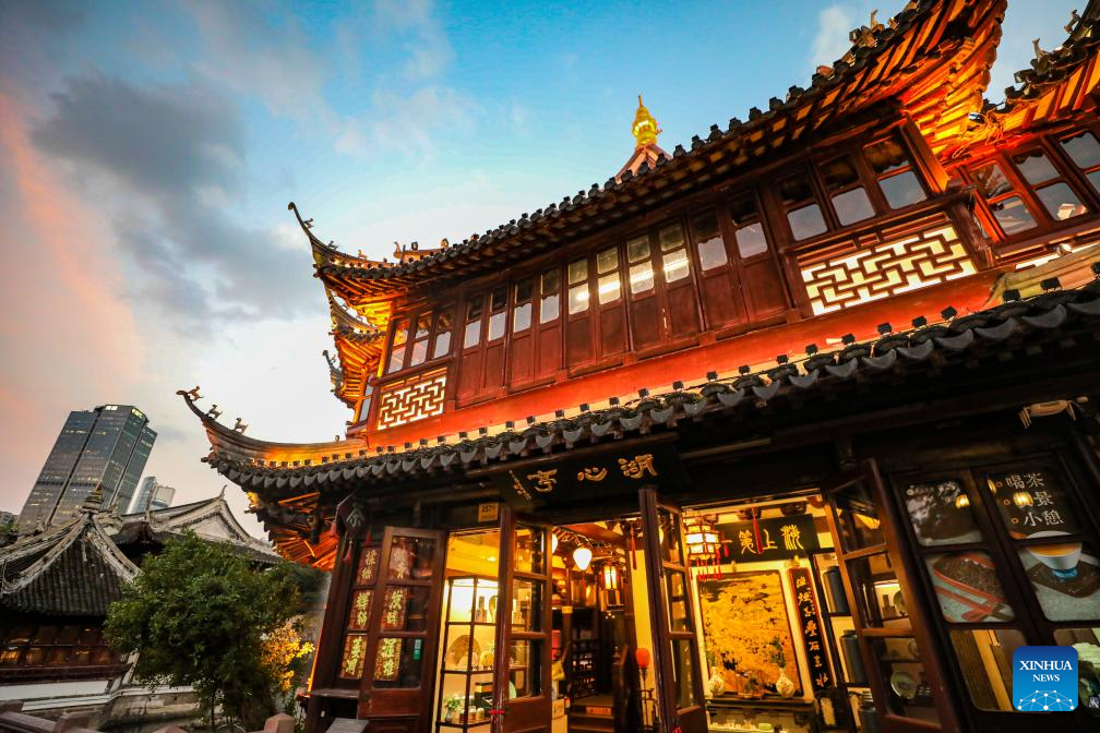 This photo taken on Oct. 11, 2023 shows a teahouse at Yuyuan Garden in east China's Shanghai. (Xinhua/Xin Mengchen)