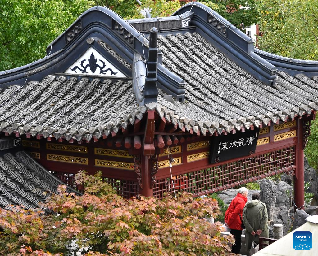 This photo taken on Sept. 29, 2023 shows people visiting Yuyuan Garden in Hamburg, Germany. (Xinhua/Ren Pengfei)