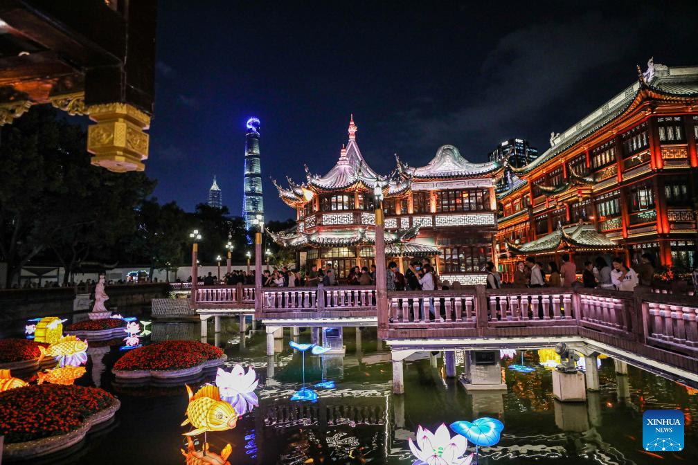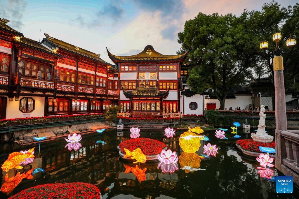 This photo taken on Sept. 29, 2023 shows the night view of Yuyuan Garden in east China's Shanghai. (Xinhua/Liu Ying)