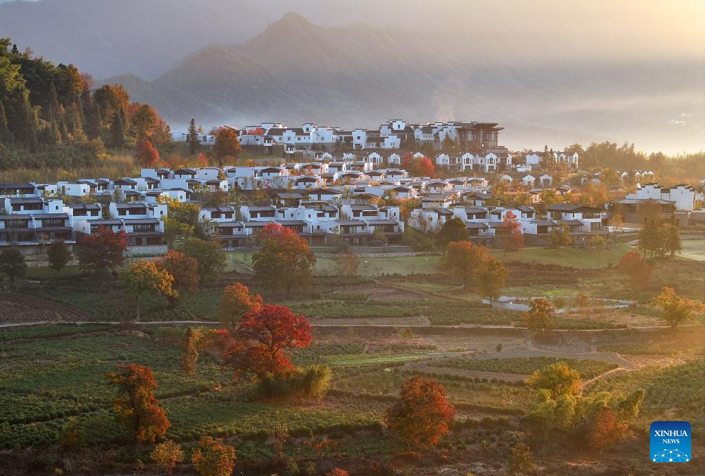 This photo taken on Nov. 1, 2023 shows the autumn view in Hongcun Town, Yixian County, Huangshan City, central China's Anhui Province. (Photo by Shi Yalei/Xinhua)