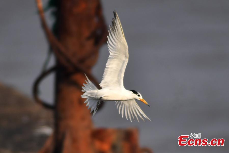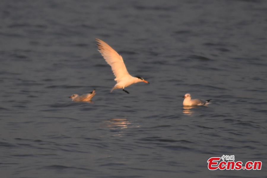 A total of 18 Chinese crested terns, dubbed "the bird of myth" were spotted in Qingdao on Tuesday. It is listed as a critically endangered species by International Union for Conservation of Nature.