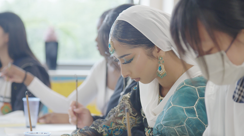 Students learn calligraphy at Kingsford Community School. (Photo/Patrick Shead-Simmonds)