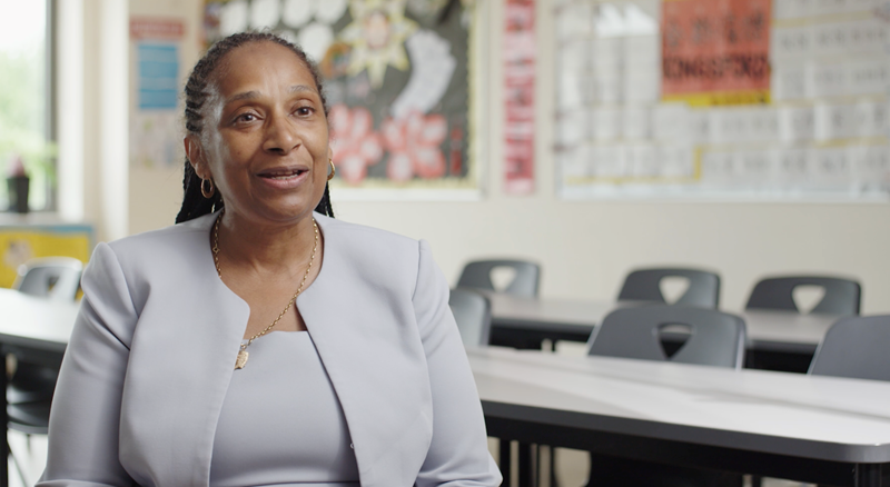 Joan Deslandes with students in the classroom. (Photo/Patrick Shead-Simmonds)
