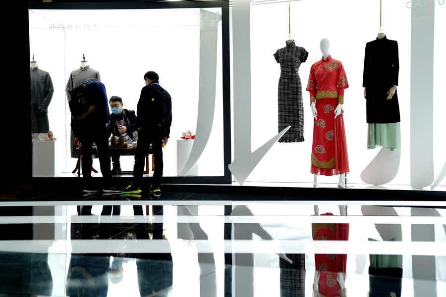 People visit the booth of a time-honored clothing brand at the 4th China International Import Expo (CIIE) in east China's Shanghai, Nov. 6, 2021. (Xinhua/Zhang Jiansong)
