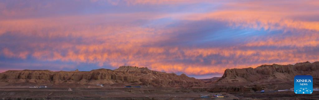 This photo taken on Nov. 3, 2023 shows the landscape of earth forest during dawn in Zanda County of Ngari Prefecture, southwest China's Tibet Autonomous Region. Zanda is famous for the unique landscape of earth forest. With gullies, ravines and steep mountainsides, the unique landscape was shaped as a result of gradual geological movements of the Himalayan region ever since the Quaternary Period from 2.5 million years ago and the impact of perennial water erosion and airslaking. (Xinhua/Chen Shangcai)