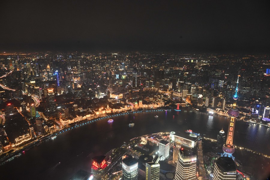 This photo taken on Nov. 3, 2023 shows a night view of Shanghai, east China. The 6th China International Import Expo (CIIE) is scheduled to be held in Shanghai from Nov. 5 to 10. (Xinhua/Jin Liwang)