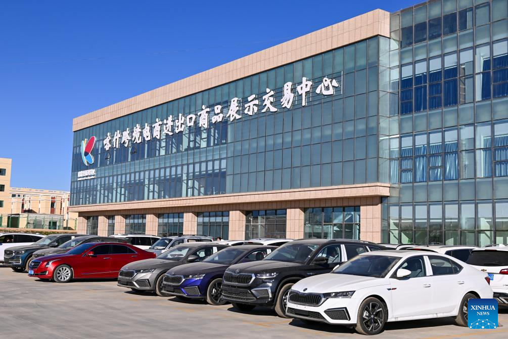 This photo taken on Nov. 4, 2023 shows the cross-border e-commerce import and export commodities exhibition and trading center in the comprehensive bonded zone in Kashgar Prefecture, northwest China's Xinjiang Uygur Autonomous Region. (Xinhua/Ding Lei)