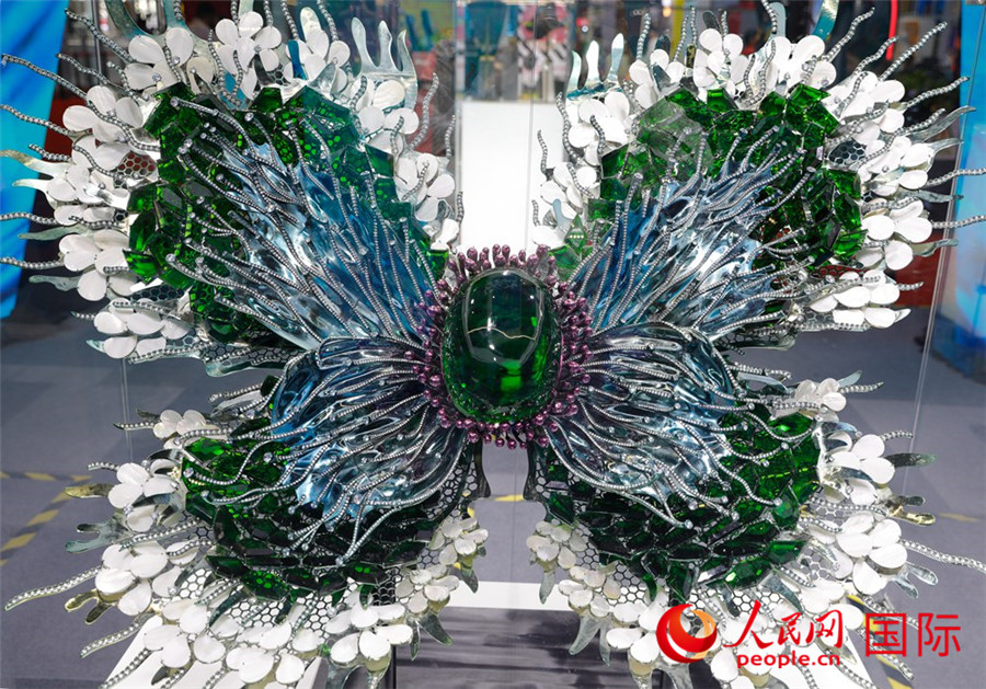 Photo from Nov. 5 shows a butterfly-shaped eco-friendly art piece at the consumer goods section of the 6th China International Import Expo in Shanghai. (People's Daily Online/Li Meiyu)