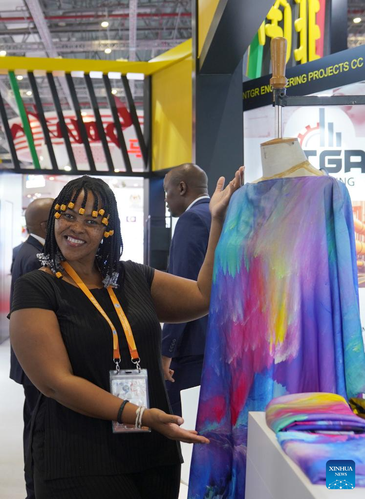 An exhibitor displays a product at the booth of South Africa at the 6th China International Import Expo (CIIE) in east China's Shanghai, Nov. 6, 2023. The 6th China International Import Expo is held here from Nov. 5 to 10, with Honduras, Serbia, Vietnam, South Africa and Kazakhstan as its five guest countries of honor. (Xinhua/Li Mengjiao)