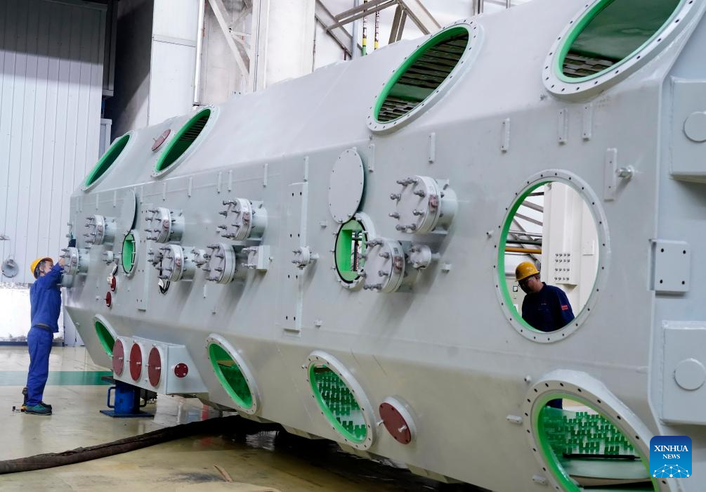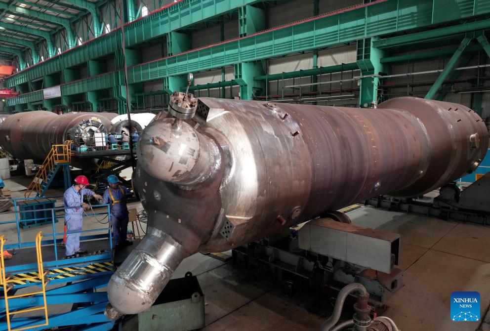 People work at the workshop of a heavy equipment manufacturing company in the Qinhuangdao Economic and Technological Development Zone, north China's Hebei Province, Nov. 5, 2023.?(Xinhua/Yang Shiyao)