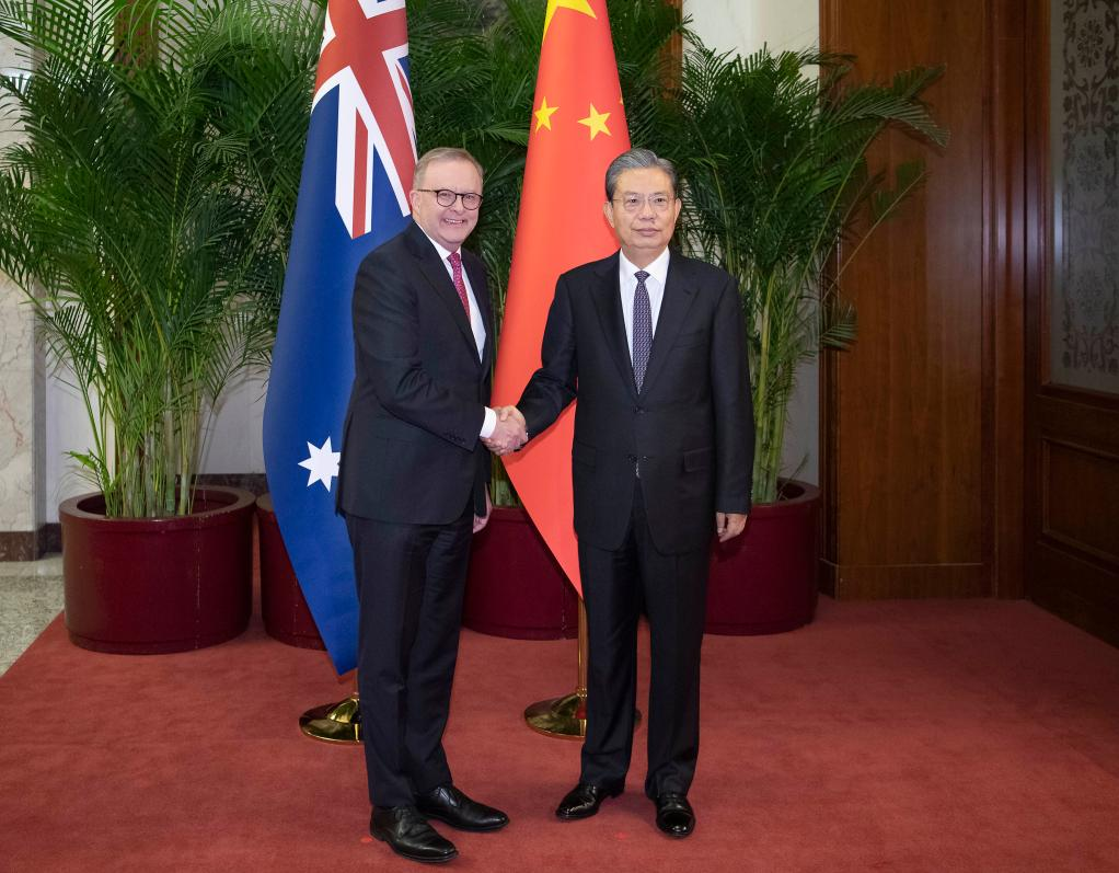 In the meeting with Albanese, Zhao noted that the sound and steady development of China-Australia relations serves the fundamental interests of the two peoples and is conducive to peace, stability and prosperity in the Asia-Pacific region and the world at large.