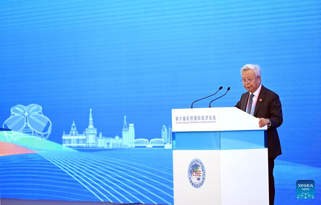 Jin Liqun, president of the Asian Infrastructure Investment Bank (AIIB), delivers a keynote speech at the sub-forum on Building Hongqiao International Opening-up Hub & Hub Conference 2023 of the sixth Hongqiao International Economic Forum in Shanghai, east China, Nov. 6, 2023. (Xinhua/Jin Liangkuai)