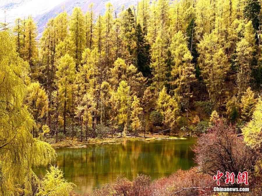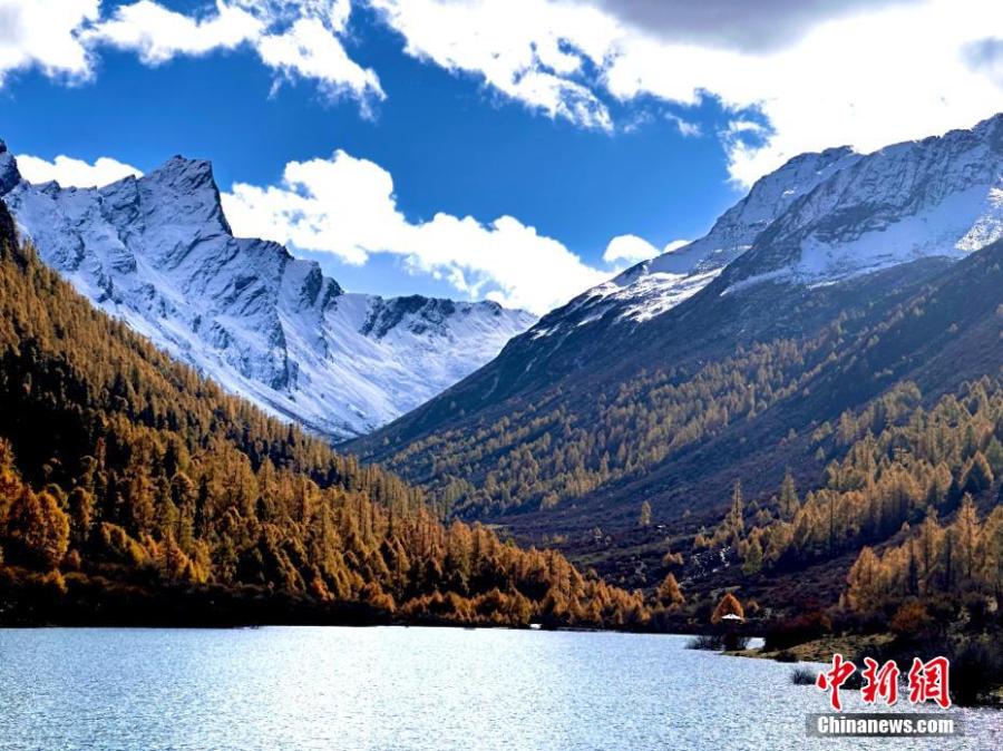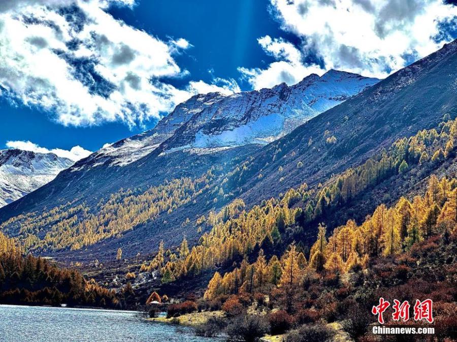 Stunning shades of yellow and orange adorn trees with snow-capped mountains, creating a fairyland scenery at Majiagou valley, Xiaojin County, Aba Tibetan-Qiang Autonomous Prefecture, southwest China's Sichuan Province. (Photo: China News Service/Cheng Bangliang)
