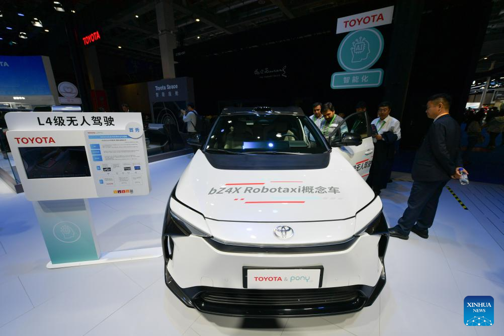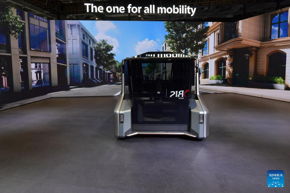 A robotaxi is exhibited at the automobile exhibition area of the 6th China International Import Expo (CIIE) in east China's Shanghai, Nov. 6, 2023. (Xinhua/Meng Tao)