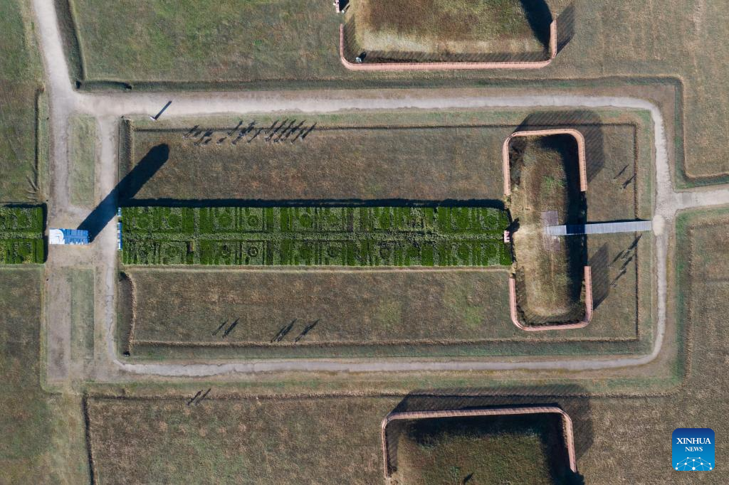 This aerial photo taken on Nov. 7, 2023 shows the entrance of the Archaeological Ruins of Liangzhu City park in Hangzhou, capital city of east China's Zhejiang Province.?(Xinhua/Xu Yu)