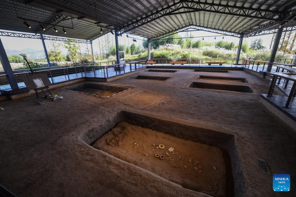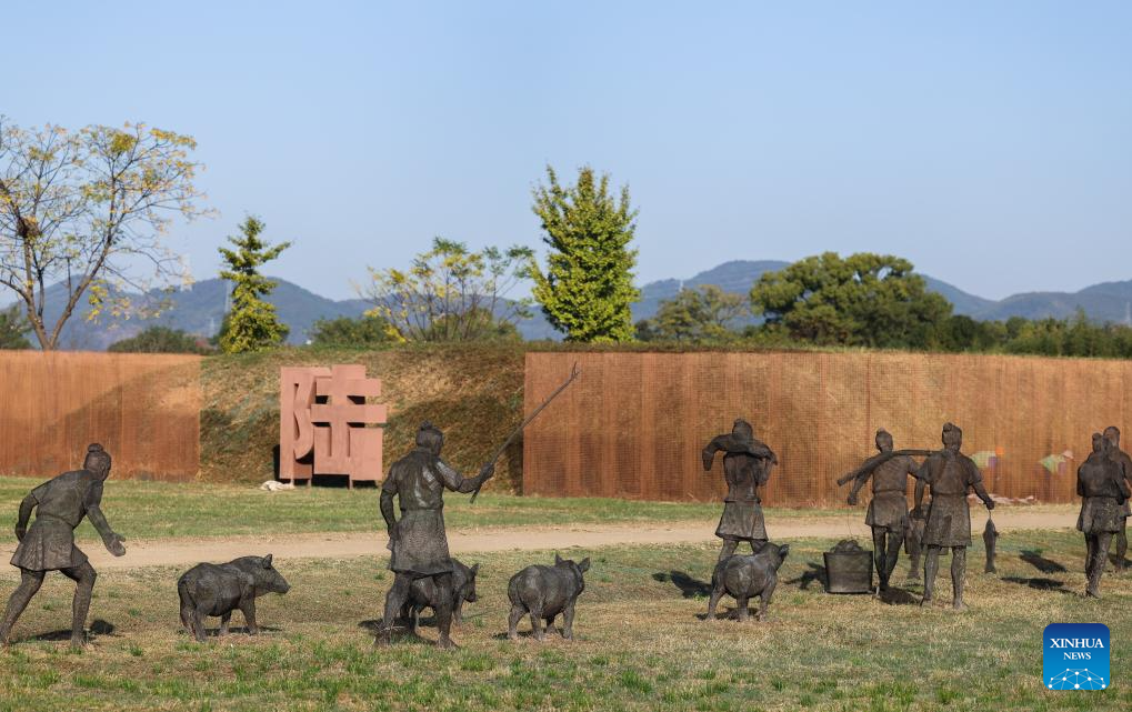 This photo taken on Nov. 7, 2023 shows the an archaeological site at the Archaeological Ruins of Liangzhu City park in Hangzhou, capital city of east China's Zhejiang Province.?(Xinhua/Xu Yu)