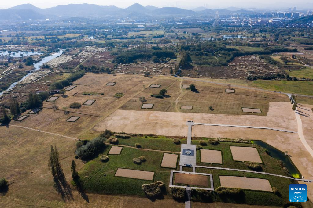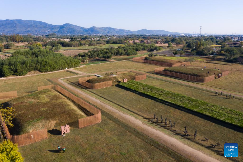 This aerial photo taken on Nov. 7, 2023 shows the view of the Archaeological Ruins of Liangzhu City park in Hangzhou, capital city of east China's Zhejiang Province.?(Xinhua/Xu Yu)