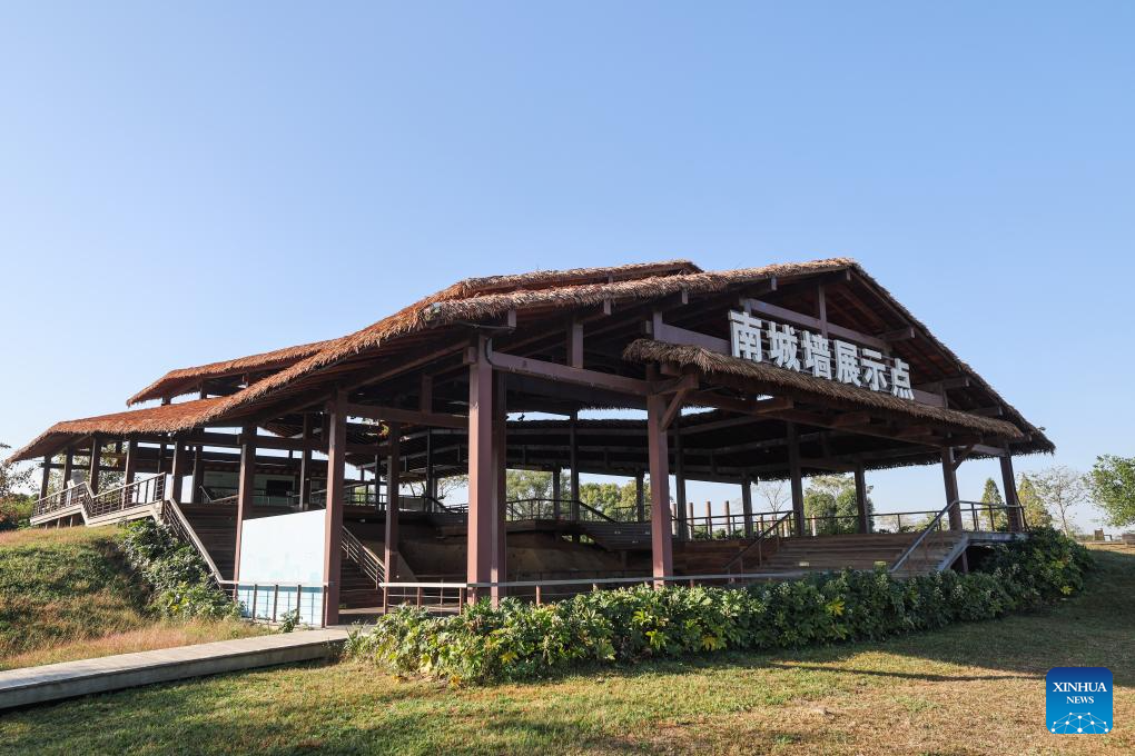 This photo taken on Nov. 7, 2023 shows a display spot of ancient city walls at the Archaeological Ruins of Liangzhu City park in Hangzhou, capital city of east China's Zhejiang Province.?(Xinhua/Xu Yu)