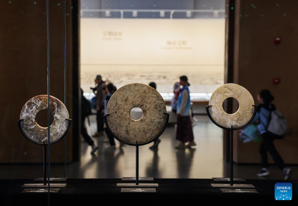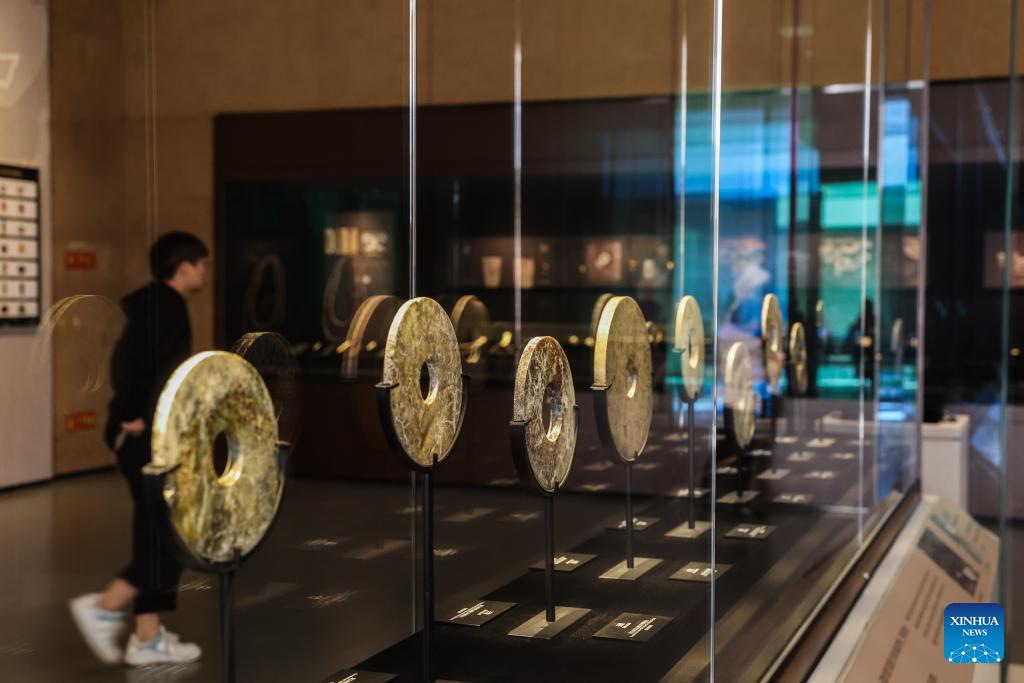 Tourists visit the Liangzhu Museum in Hangzhou, capital city of east China's Zhejiang Province, Nov. 7, 2023.?(Xinhua/Xu Yu)