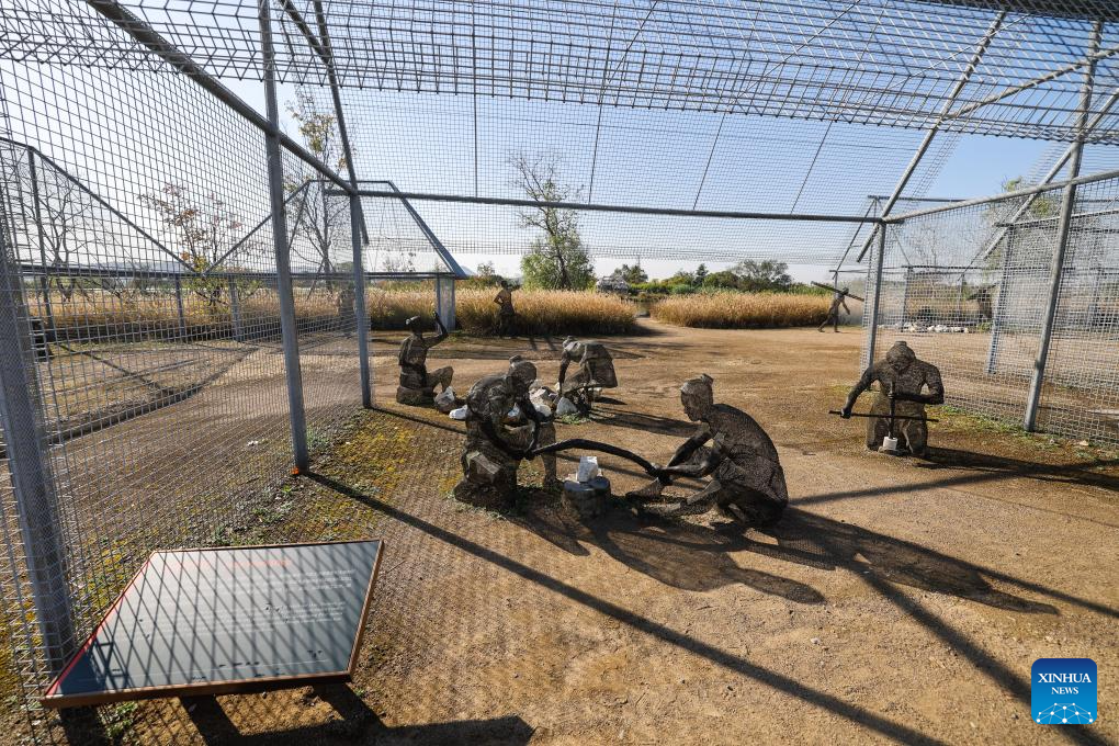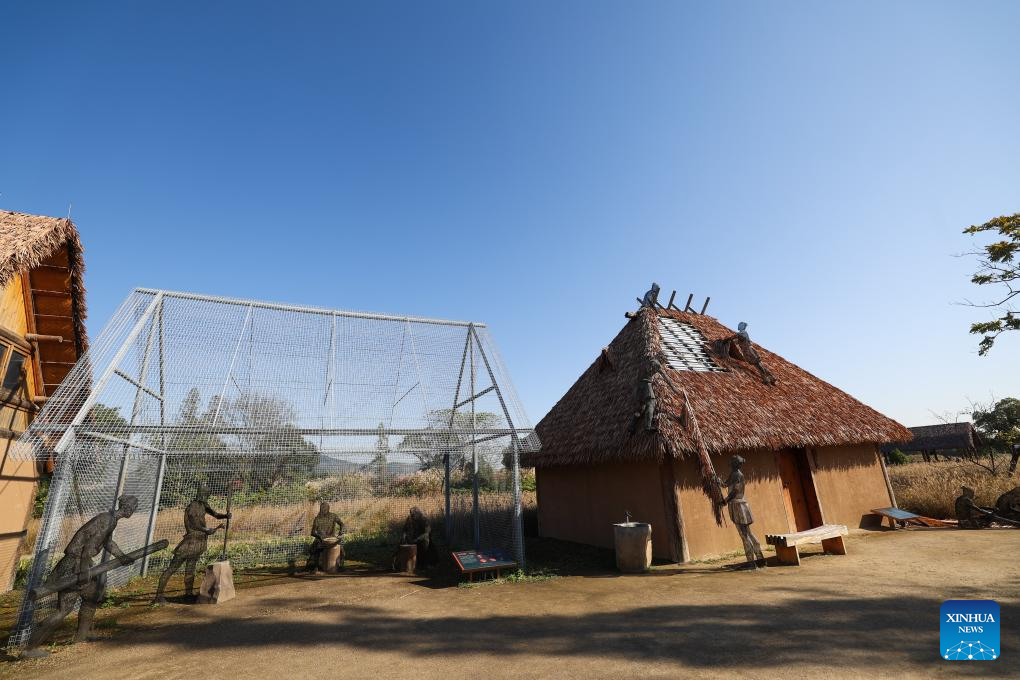 This photo taken on Nov. 7, 2023 shows the model of a workshop at the Archaeological Ruins of Liangzhu City park in Hangzhou, capital city of east China's Zhejiang Province.?(Xinhua/Xu Yu)
