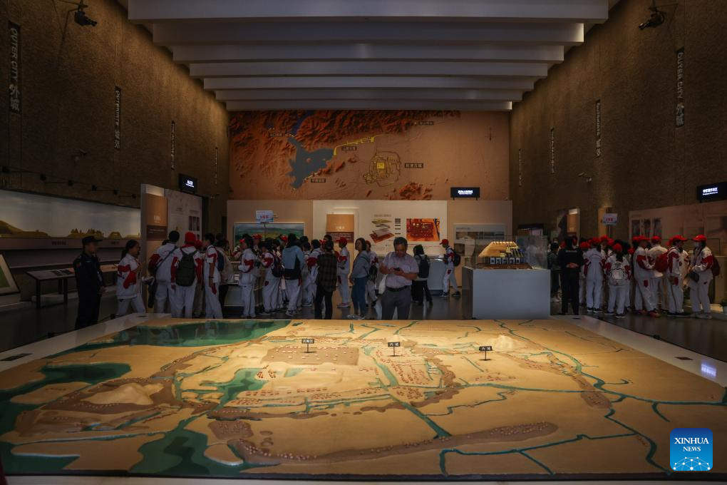 This photo taken on Nov. 7, 2023 shows the model of the Liangzhu Ancient City site at the Archaeological Ruins of Liangzhu City park in Hangzhou, capital city of east China's Zhejiang Province.?(Xinhua/Xu Yu)