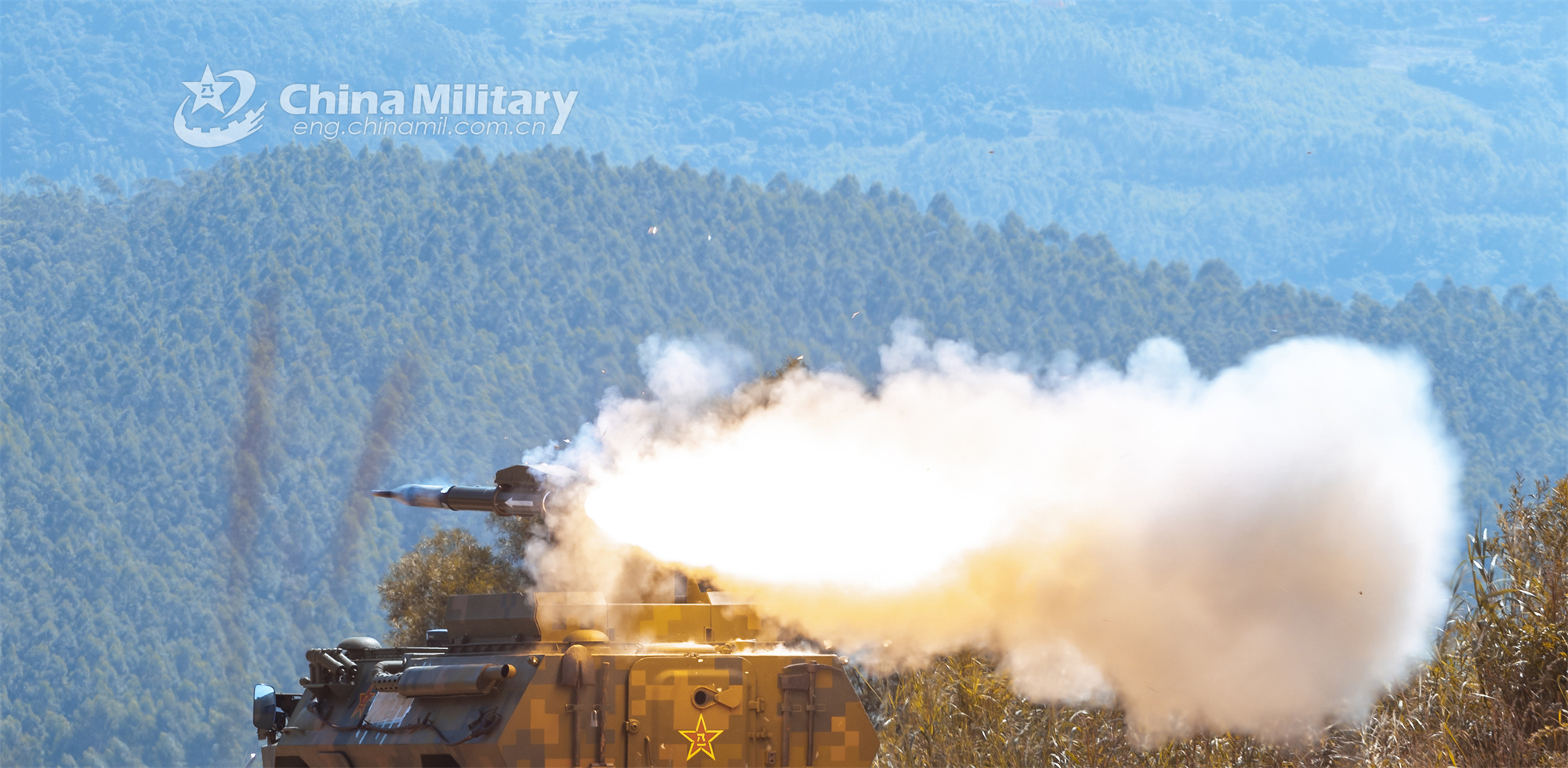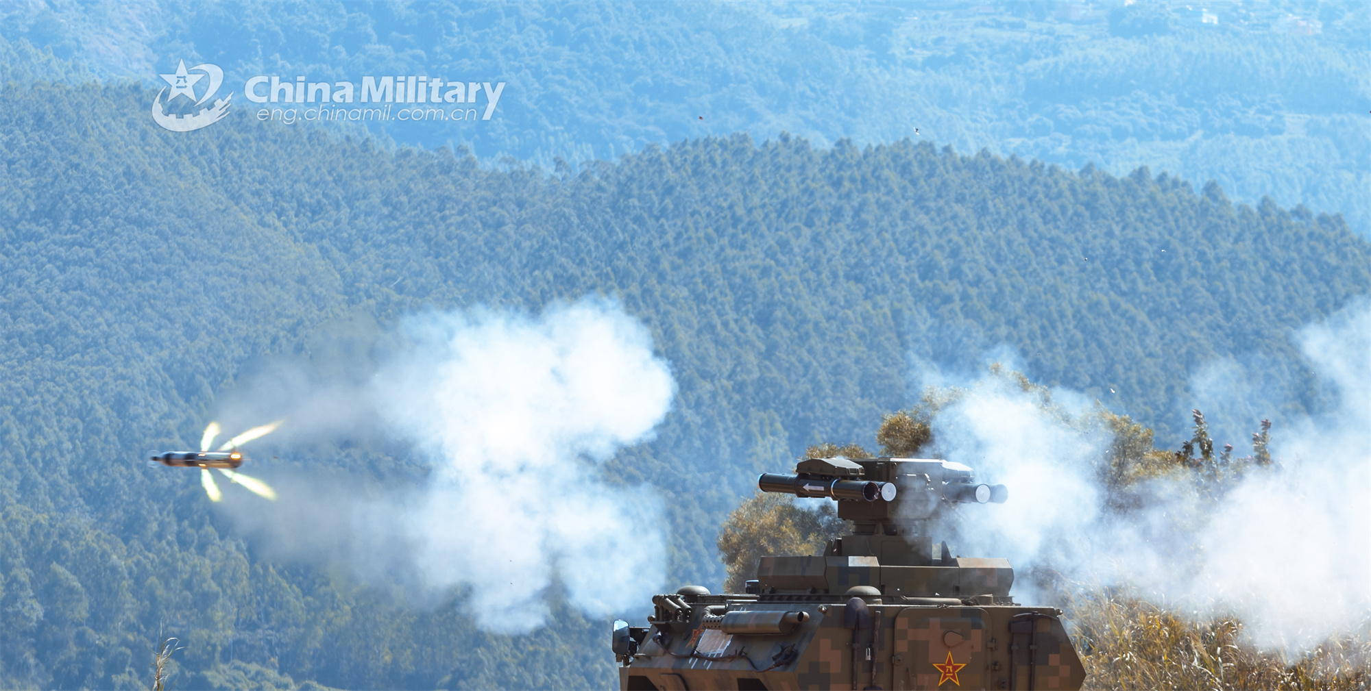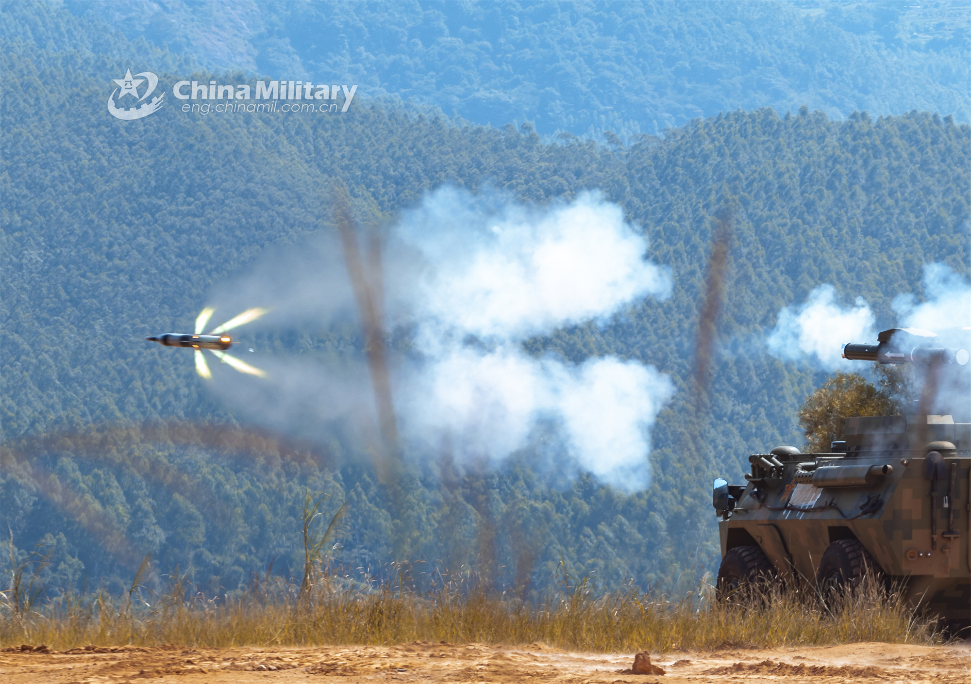 An anti-tank missile system attached to a firepower element of an army brigade under the Chinese PLA Eastern Theater Command fires an antitank missile at the mock target during a live-fire training exercise on October 16, 2023. (eng.chinamil.com.cn/Photo by Zeng Bingyang)