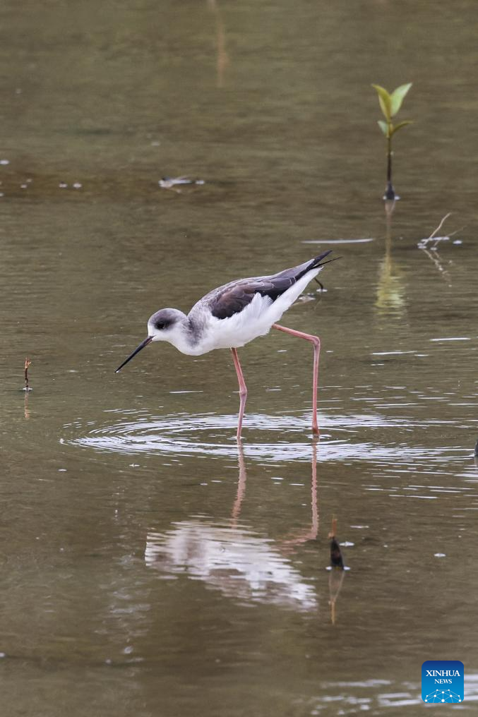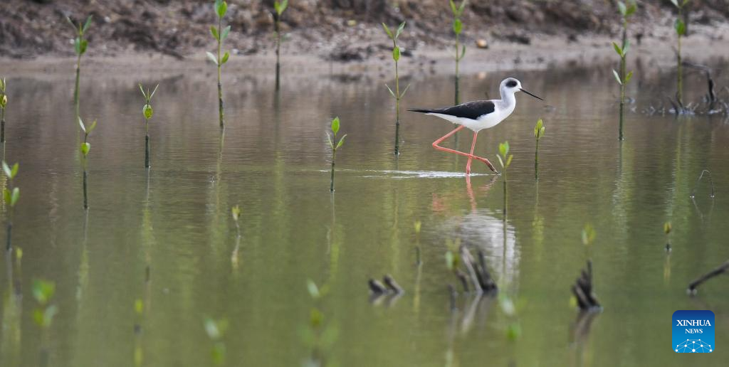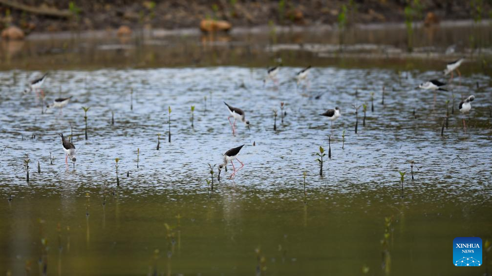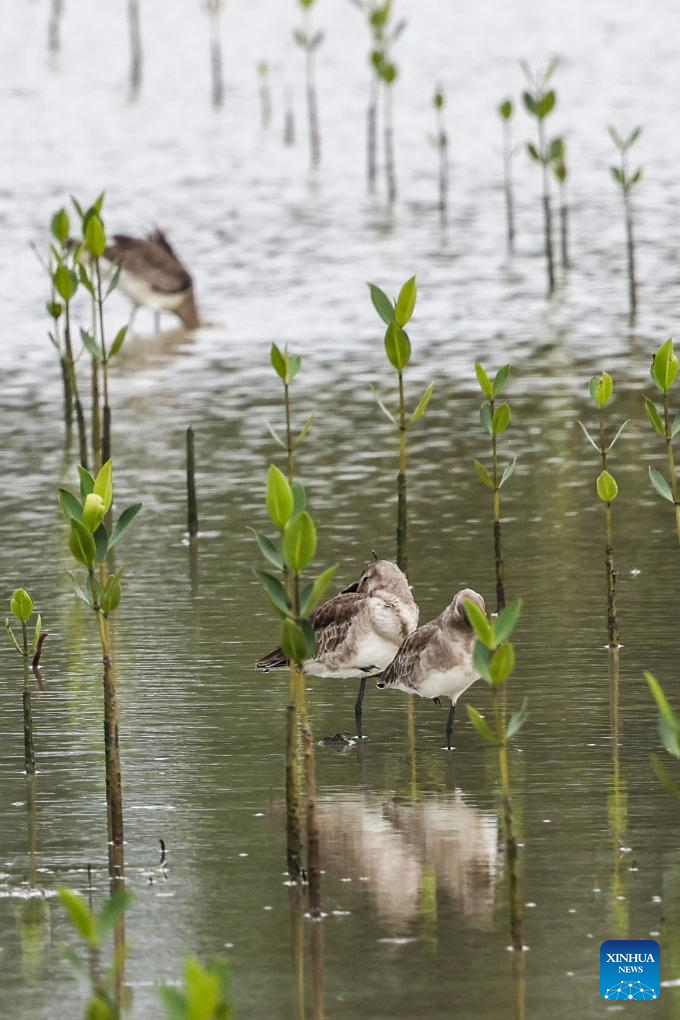 Migratory birds are seen at Dongzhai Port Nature Reserve in Haikou, south China's Hainan Province, Nov. 8, 2023. The place is known for its mangrove forest, which provides a habitat for birds and other wild animals. (Xinhua/Yang Guanyu)