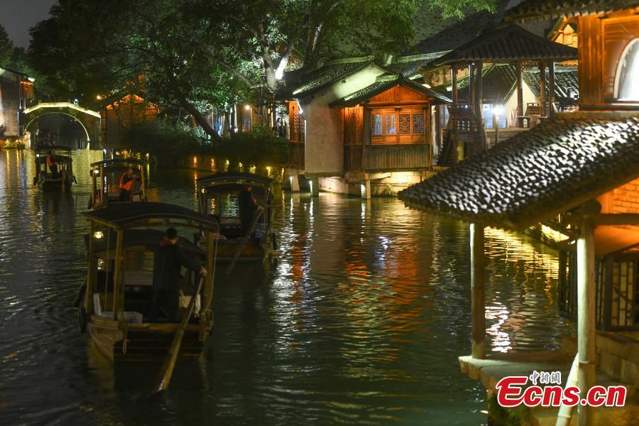 Night scenery of river town Wuzhen in east China's Zhejiang Province. The 2023 World Internet Conference (WIC) Wuzhen Summit kicked off on Wednesday in Wuzhen. (Photo: China News Service/Wang Gang)