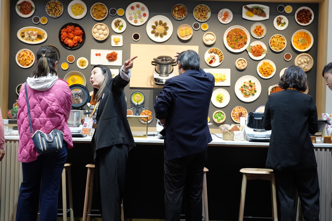 Attendees explore a range of kitchen appliances in consumer goods exhibition area at the sixth China International Import Expo (CIIE) in Shanghai, east China, Nov. 7, 2023. (People’s Daily Online/Wu Chaolan)