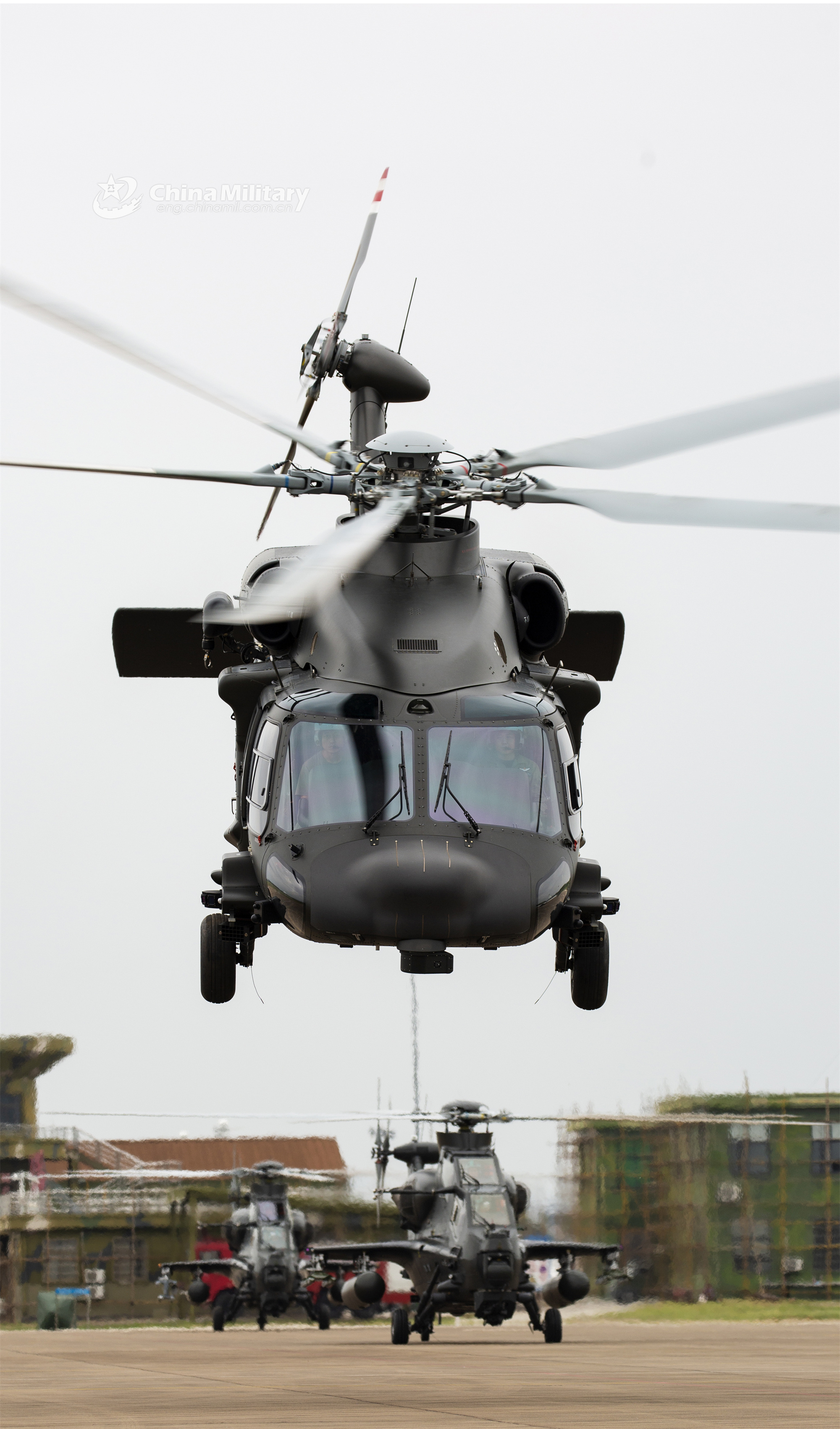 Army helicopters take off in succession from an air force station under the PLA Eastern Theater Command during a trans-regional operation on October, 22, 2023. (eng.chinamil.com.cn/Photo by Huang Guotai)