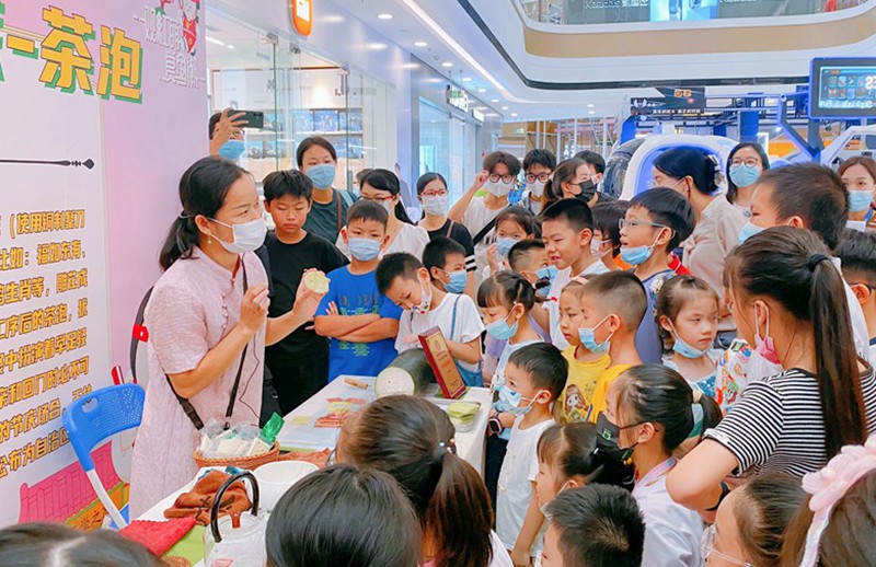 Li Xiyan introduces Chapao to visitors during a promotional event. (Photo courtesy of the publicity department of the Communist Party of China Yuzhou district committee)
