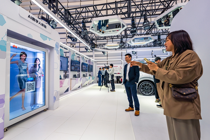 A visitor interacts with artificial intelligence figures at the Light of Internet Expo of the 2023 World Internet Conference Wuzhen Summit in Wuzhen, east China's Zhejiang province, Nov. 7, 2023. (People's Daily Online/Zhang Feng)