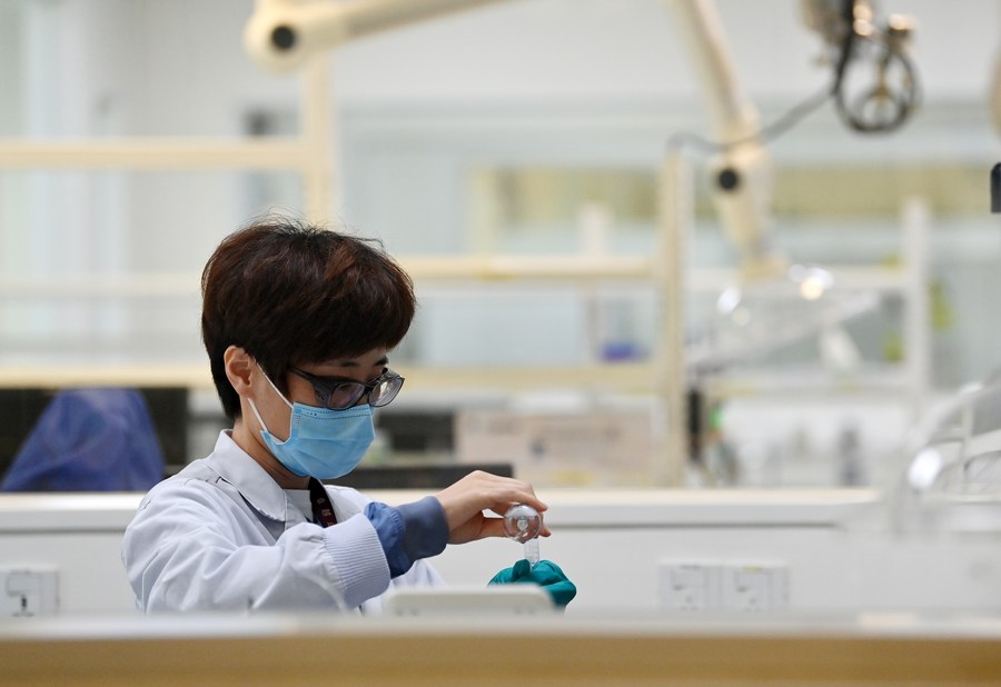 A staff member works at a lab of Novo Nordisk (China) Pharmaceutical Co., Ltd. in north China's Tianjin, Sept. 22, 2022. (Xinhua/Li Ran)