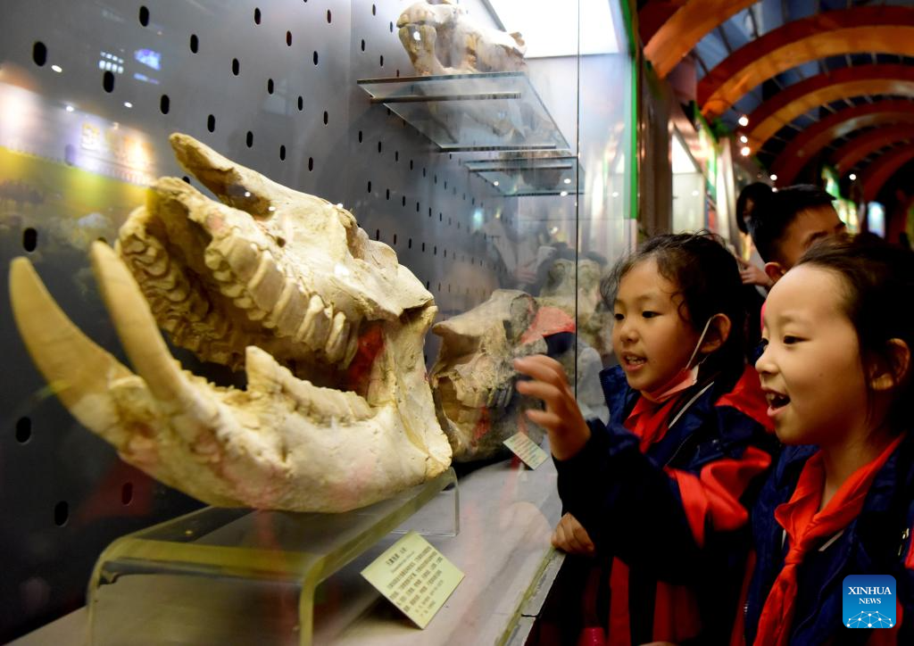 Pupils from Chunhua School participate in a scientific education tour at Henan Natural History Museum in Zhengzhou, central China's Henan Province, Nov. 9, 2023. (Xinhua/Zhu Xiang)
