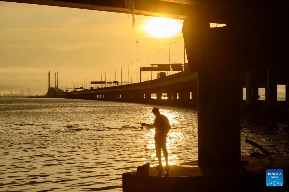 A man fishes in Penang, Malaysia, Nov. 8, 2023. (Photo by Chong Voon Chung/Xinhua)
