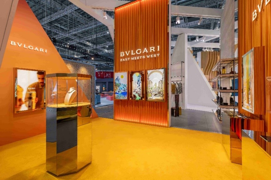 As a regular at the CIIE, Bulgari arranged its booth at the sixth CIIE under the theme "East Meets West", presenting a brand new perspective on cultural exchanges through creative communication between two Chinese and Italian contemporary artists, immersive AI interactions, and previews of its capsule collection of Serpenti Forever handbags.